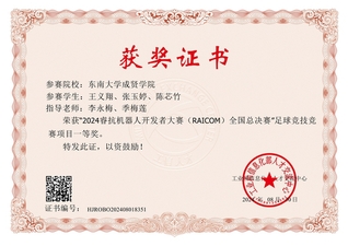 2024.8 我校學(xué)生榮獲“2024睿抗機器人開發(fā)者大賽(RAICOM)全國總決賽”足球競技競賽項目一等獎