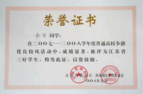 2008年江蘇省三好學(xué)生、優(yōu)秀學(xué)生干部