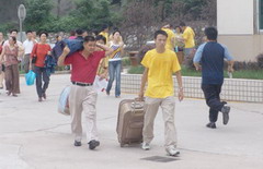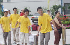 學院團委召開了迎新工作志愿者動員大會,由2004級同學組成的160人迎新工作志愿者隊伍,積極熱情地活躍在整個新生接待的各個環(huán)節(jié)。他們耐心地回復家長的咨詢,熱情地接送新生的行李,宿舍組的同學搬著一件件行李,忙碌于一樓與六樓之間,有的同學手都磨破了仍然堅持工作。在火車站負責接待工作的同學和在校內組織指揮交通的同學,冒著涼風冷雨堅守在自己的崗位上。整個迎新接待工作井然有序,給前來報到的1400多名新生和家長留下了深刻印象,受到一致好評。
