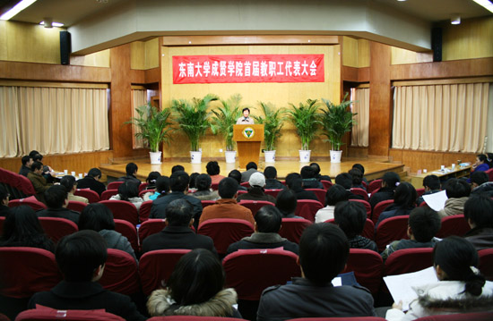 12月8日下午,我院首屆教職工代表大會在真知館報(bào)告廳隆重召開。東南大學(xué)工會主席胡漢輝、副主席吳映紅,我院黨委書記、常務(wù)副院長程明山,黨委副書記、副院長邢紀(jì)宏,副院長戚易、董梅芳,督學(xué)姚灼云以及各系、部門負(fù)責(zé)人出席了大會。會議由學(xué)院督學(xué)姚灼云主持。