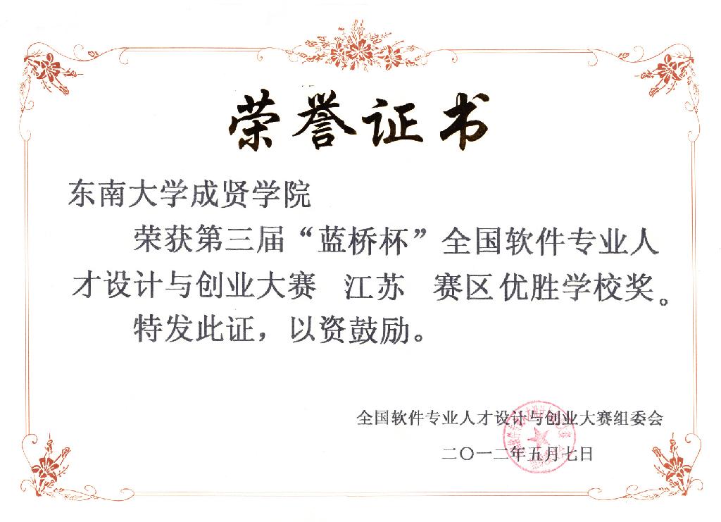 2012.5,第三屆藍(lán)橋杯優(yōu)勝學(xué)校獎