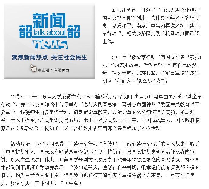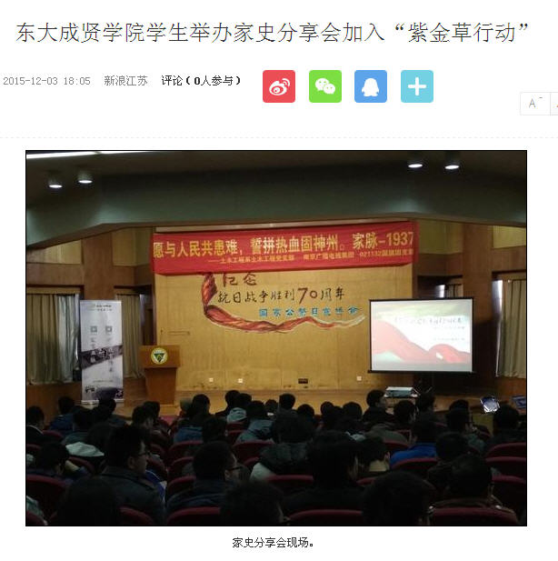 【新浪網(wǎng)】東大成賢學(xué)院學(xué)生舉辦家史分享會(huì)加入“紫金草行動(dòng)”