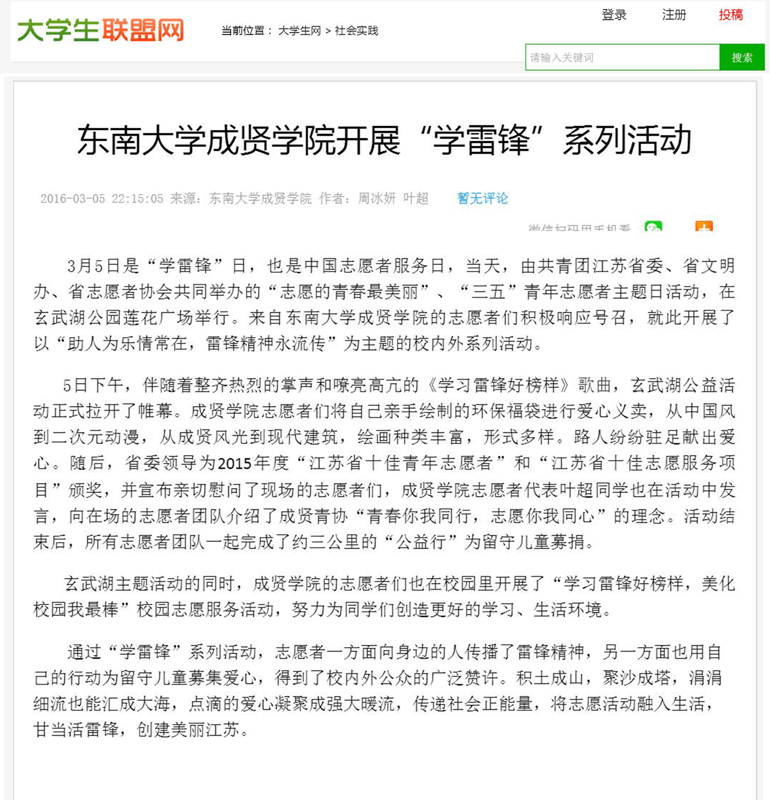 【大學(xué)生聯(lián)盟】東南大學(xué)成賢學(xué)院開展“學(xué)雷鋒”系列活動(dòng)
