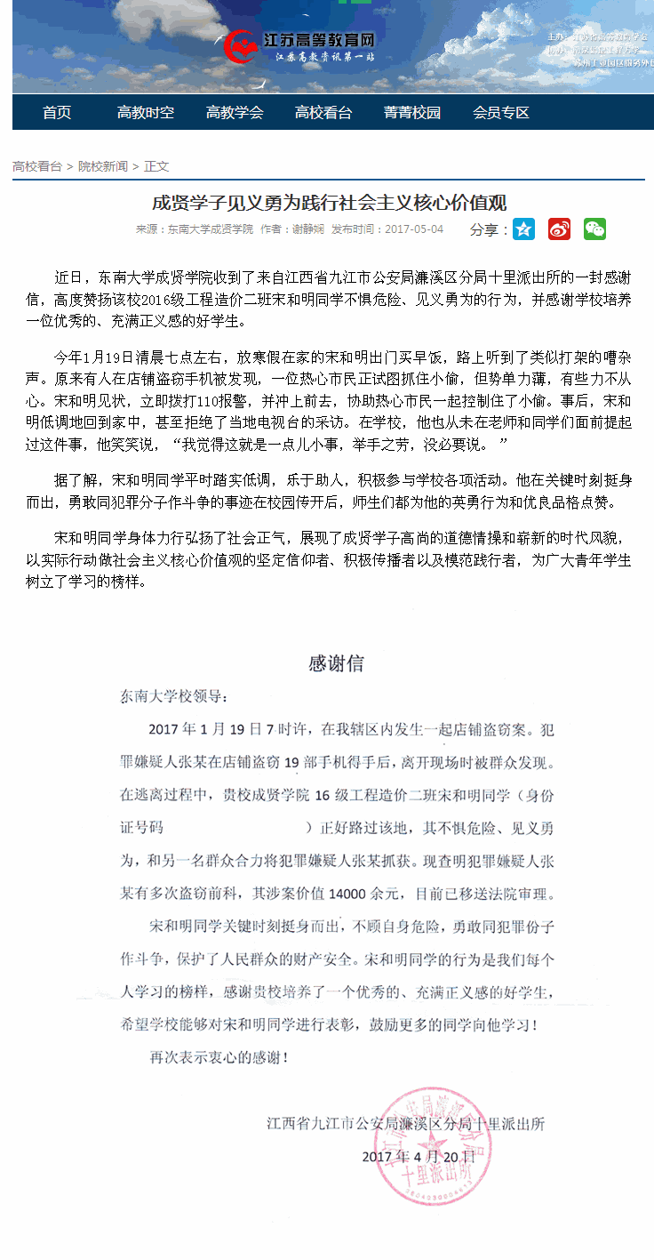 【江蘇高等教育網(wǎng)】成賢學(xué)子見(jiàn)義勇為踐行社會(huì)主義核心價(jià)值觀