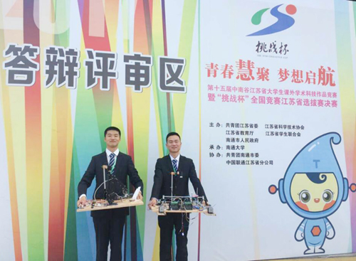 獲獎(jiǎng)作品參賽師生合影 6月4日,第十五屆江蘇省大學(xué)生課外學(xué)術(shù)科技作品競(jìng)賽暨“挑戰(zhàn)杯”全國(guó)競(jìng)賽江蘇省選拔賽決賽經(jīng)過(guò)3天的激烈角逐落下帷幕。我校選送的作品《“ΣGobang”基于機(jī)器視覺(jué)的遠(yuǎn)程機(jī)械對(duì)弈系統(tǒng)》榮獲江蘇省二等獎(jiǎng),這是我校第一次登上“挑戰(zhàn)杯”舞臺(tái)。