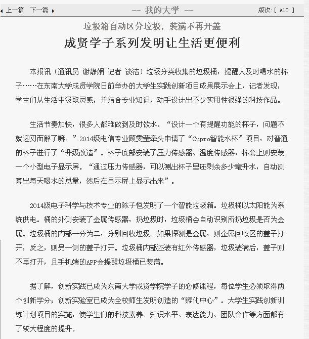【南京日報】成賢學(xué)子系列發(fā)明讓生活更便利