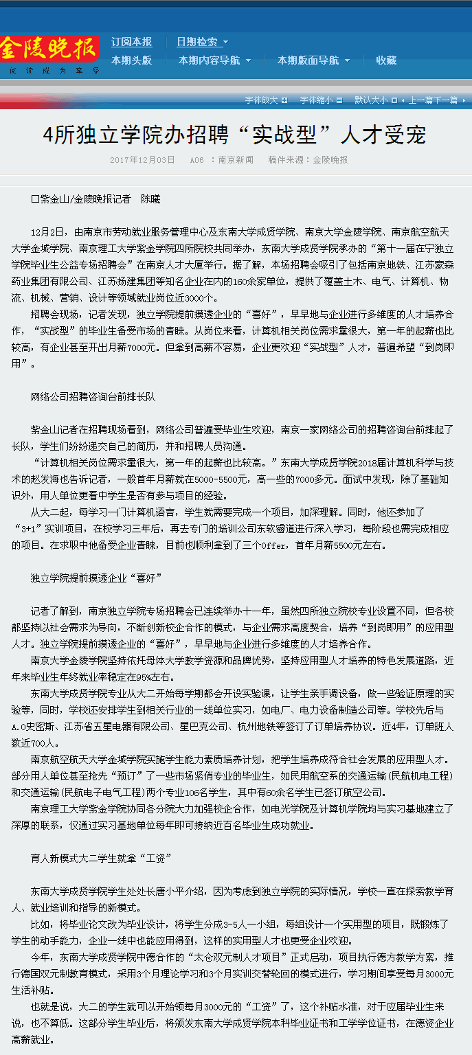 【金陵晚報】4所獨立學(xué)院辦招聘“實戰(zhàn)型”人才受寵