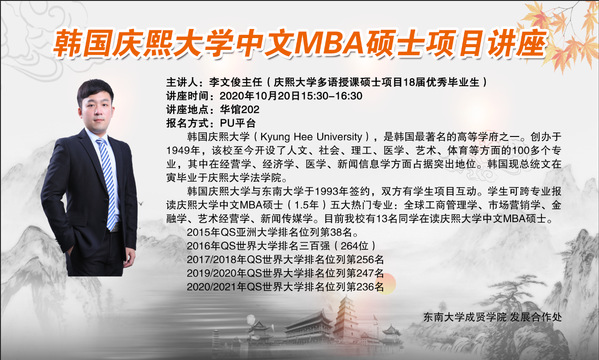 韓國(guó)慶熙大學(xué)中文MBA碩士項(xiàng)目講座