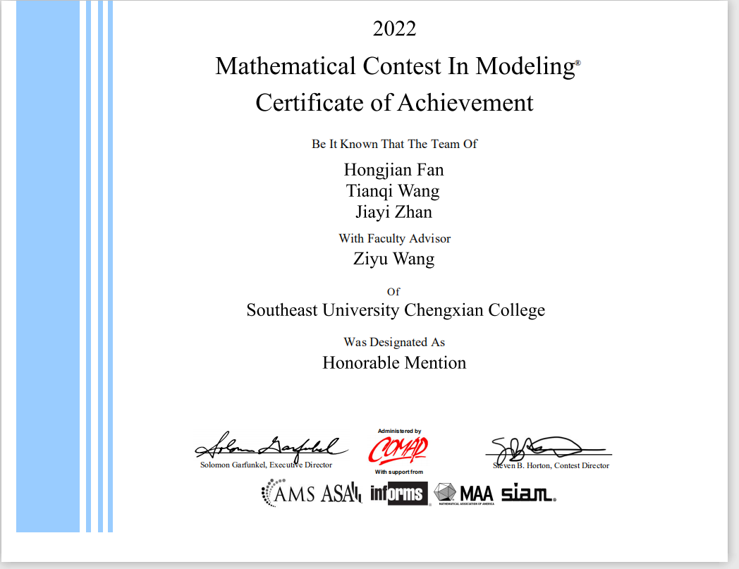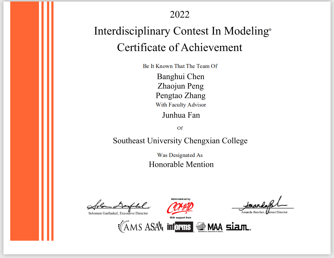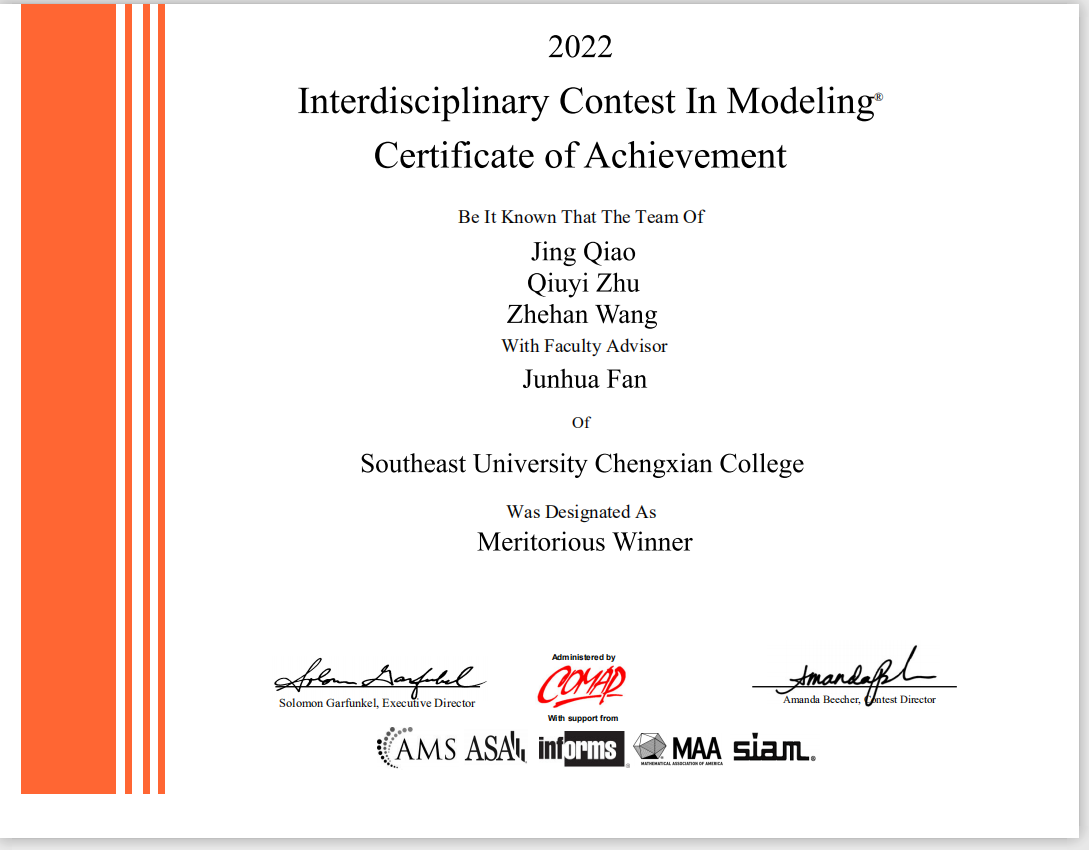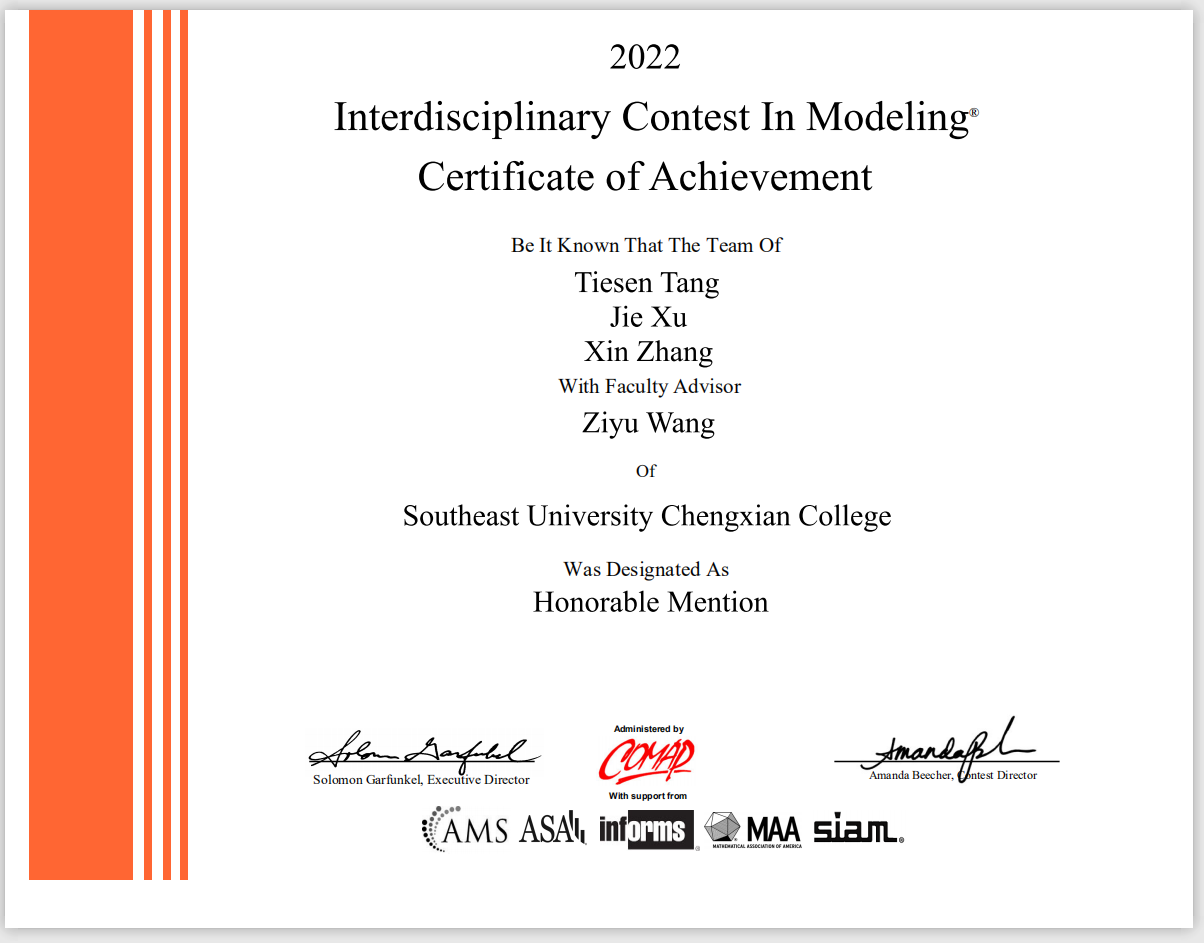 近日,2022年度第38屆美國大學(xué)生數(shù)學(xué)建模競賽(MCM/ICM)獲獎結(jié)果公布。東南大學(xué)成賢學(xué)院在本屆競賽中取得優(yōu)異成績,榮獲國際一等獎一項(Meritorious Winner),國際二等獎三項(Honorable Mention),較2021年度獲獎人數(shù)翻倍,打破了我校以往在該項競賽中的最高獲獎紀(jì)錄,在江蘇省同類高校中名列前茅。