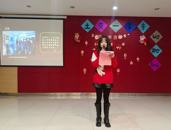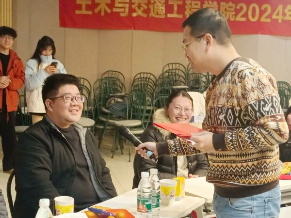 聯(lián)歡會(huì)伊始,輔導(dǎo)員孫琳玲通過“土交大事記”的形式,與全體教職工共同回顧了土木與交通工程學(xué)院2023年在專業(yè)建設(shè)、人才培養(yǎng)、師資隊(duì)伍建設(shè)等工作中所取得的成績(jī)。2023年,奮斗是每一個(gè)“土交人”的標(biāo)簽,一張張圖片的背后展現(xiàn)了“土交人”努力奮斗、砥礪前行的良好精神風(fēng)貌。隨后郭正興院長(zhǎng)為獲得土木與交通工程學(xué)院2023年“年度人物”榮譽(yù)稱號(hào)的老師頒發(fā)了獎(jiǎng)狀。在新年致辭中,郭正興院長(zhǎng)表示,2023年是極不平凡的一年,土木與交通工程學(xué)院全體教職工勠力同心,克服了種種困難,學(xué)院新專業(yè)建設(shè)、學(xué)生管理、教學(xué)、科研、師資隊(duì)伍建設(shè)等各項(xiàng)工作有序推進(jìn)。學(xué)院黨政協(xié)同,圍繞高水平應(yīng)用型人才培養(yǎng)和一流專業(yè)建設(shè)工作,立足“新工科”建設(shè)背景下高校人才培養(yǎng)的要求,不斷完善育人體系。他希望全院教職工在2024年開拓進(jìn)取、凝心聚力,加強(qiáng)內(nèi)涵建設(shè),推進(jìn)新專業(yè)建設(shè),培育高質(zhì)量應(yīng)用型人才,推動(dòng)土木與交通工程學(xué)院各項(xiàng)事業(yè)科學(xué)發(fā)展,為學(xué)校創(chuàng)建全國(guó)一流應(yīng)用型大學(xué)添磚加瓦。