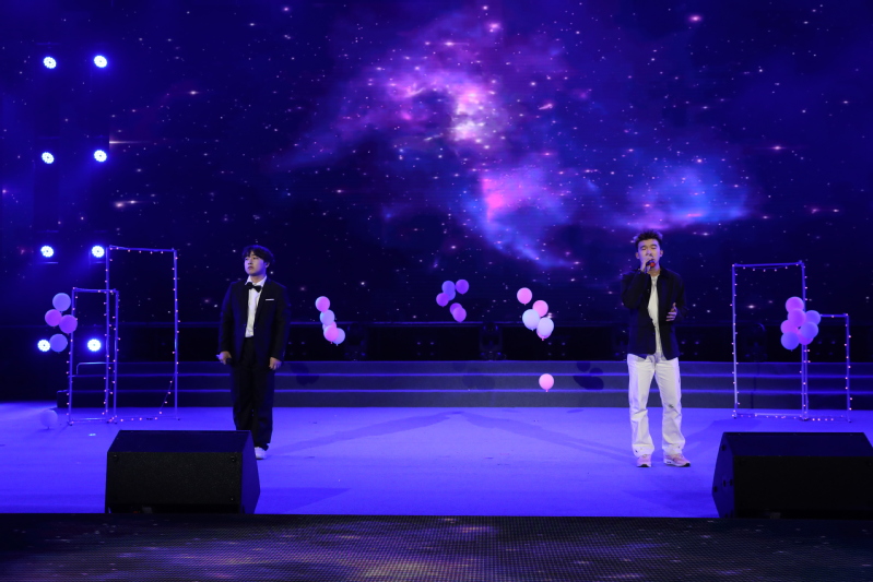 晚會分為15日、16日兩場演出,在燈光秀和開場舞蹈《we rock》《yes ok》的歡快旋律中拉開帷幕。歌曲串燒《門》《永不失聯(lián)的愛》《天黑黑》等余音繞梁;舞蹈《面紗》、說唱《麒麟》節(jié)奏充滿力量,舞姿瀟灑利落;歌舞《逐夢》、合唱《有我》獻給一代代不負時代重托的中國青年;民樂《象王行》展現(xiàn)氣吞山河的磅礴景象;小品《反詐銀行》詼諧幽默地講述真實詐騙案例;舞蹈《只此青綠》以“青綠”彰顯中華之美,用舞蹈繪就《千里江山圖》;舞臺劇《穿越時空的電臺》跨越時空共享《歌唱祖國》誕生的幸福;音詩畫《憶江南》將多種藝術形式融入《富春山居圖》山水意境;民舞《唐宮夜宴》惟妙惟肖,帶領觀眾穿越千年時光,共赴唐宮夜宴,晚會中時裝秀、社團秀、退伍學生歡迎儀式以及招生視頻、軍訓視頻播放等環(huán)節(jié)形式豐富、內(nèi)容精彩,現(xiàn)場不時響起雷鳴般的掌聲與喝彩聲。晚會最終在意氣風發(fā)的歌舞《New Youth》里結束,在場領導、老師和演職人員合影留念,為本場活動畫上了圓滿的句號。
