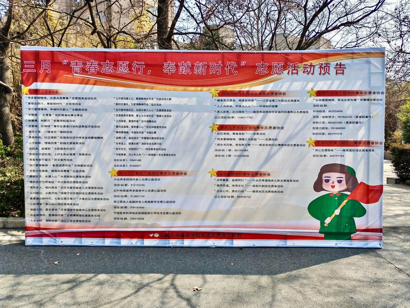 為踐行雷鋒精神,志愿者們在中大醫(yī)院開展了“便民醫(yī)療,我為引導(dǎo)”志愿服務(wù)活動(dòng),向患者及其家屬普及自助掛號(hào)機(jī)的使用方法,為行動(dòng)不便的患者提供幫助;在云錦博物館開展了“品金陵物華,賞博物風(fēng)雅”志愿服務(wù)活動(dòng),為往來游客耐心講解云錦文化,展現(xiàn)了他們傳承非遺文化健康向上的精神風(fēng)貌。