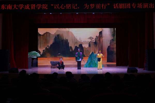 11月28日晚,由校團委主辦,大學(xué)生藝術(shù)指導(dǎo)中心承辦的“以心銘記,為夢前行”話劇團專場演出在綜合樓報告廳舉辦,全校650余名師生觀看了演出。