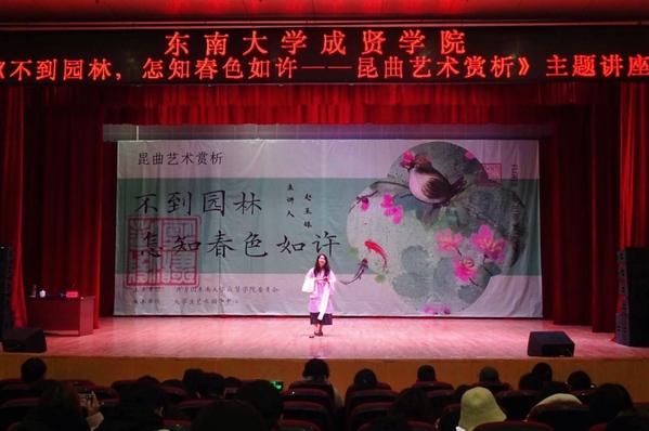 12月12日晚,由校團(tuán)委主辦、大學(xué)生藝術(shù)指導(dǎo)中心承辦的“不到園林,怎知春色知許——昆曲藝術(shù)賞析”主題講座在綜合樓報告廳舉辦。本次講座特邀南京大學(xué)戲劇影視文學(xué)系、戲劇戲曲學(xué)碩士、區(qū)級非遺代表傳承人、南京大學(xué)昆曲研究中心副秘書長、中國昆劇古琴研究會會員趙玉姝老師擔(dān)任主講,全校650余名學(xué)生聆聽了講座。