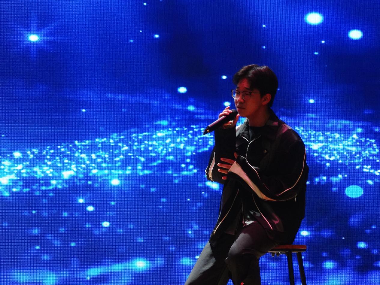 演出以《逆光》開場(chǎng),激昂的節(jié)奏與充滿力量的演唱瞬間點(diǎn)燃現(xiàn)場(chǎng),展現(xiàn)出追光者在逆境中奮勇前行的決心,鼓舞著每一位觀眾勇敢直面生活挑戰(zhàn);《蘇州河》舒緩悠揚(yáng)的旋律如潺潺流水般流淌,溫柔的嗓音訴說著河畔故事,將觀眾帶入靜謐而浪漫的氛圍,勾起對(duì)美好過往的回憶;英文歌曲《Someone Like You》深情款款,演唱者極具感染力的嗓音詮釋出愛情的遺憾與釋懷,引發(fā)情感共鳴;民謠《阿嬤》以質(zhì)樸的歌詞搭配溫暖的旋律,勾勒出記憶中阿嬤的慈祥模樣,充滿濃郁的鄉(xiāng)愁,喚起大家對(duì)親人的思念之情;歌曲《命運(yùn)》磅礴的氣勢(shì)和激昂的旋律如命運(yùn)的叩擊,唱出與命運(yùn)頑強(qiáng)抗?fàn)幍牟磺瘢惠p快俏皮的《莫怕莫怕》以靈動(dòng)的節(jié)奏和活潑的演繹,傳遞出樂觀積極的生活態(tài)度,為現(xiàn)場(chǎng)帶來陣陣歡笑;《夢(mèng)的光點(diǎn)》旋律清新明快,歌聲中飽含對(duì)夢(mèng)想的憧憬與追求,點(diǎn)燃了少年心中的希望之火;合唱《世界贈(zèng)予我的》將整場(chǎng)演出推向了高潮,和諧的和聲與真摯的情感,表達(dá)了對(duì)世界的感恩與熱愛,讓在場(chǎng)的每一位觀眾感受到了音樂的魅力與溫暖。