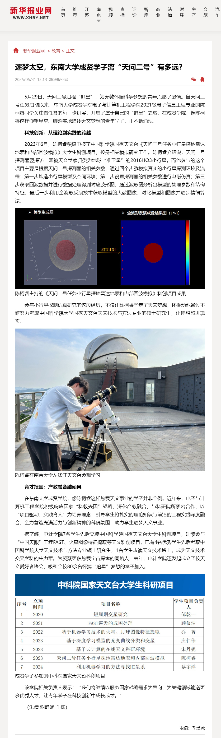 【新華報業(yè)網(wǎng)】逐夢太空,東南大學成賢學子離“天問二號”有多遠?