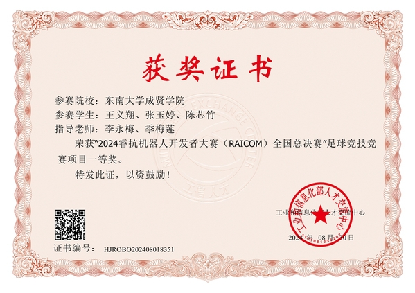 2024.8 我校學生榮獲“2024睿抗機器人開發(fā)者大賽(RAICOM)全國總決賽”足球競技競賽項目一等獎