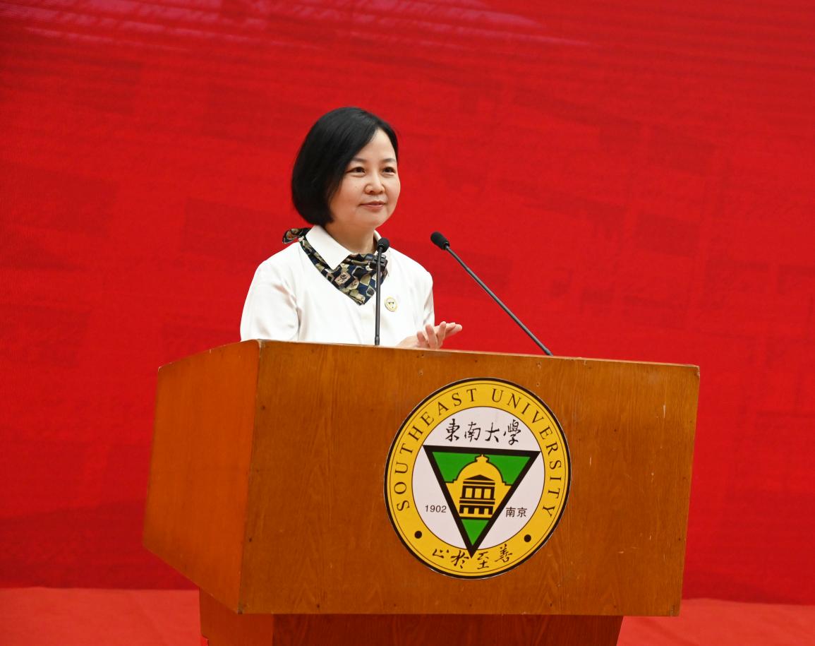 東南大學(xué)黨委副書(shū)記,東南大學(xué)成賢學(xué)院理事會(huì)理事長(zhǎng)、學(xué)院院長(zhǎng)邢紀(jì)紅給學(xué)生頒獎(jiǎng)