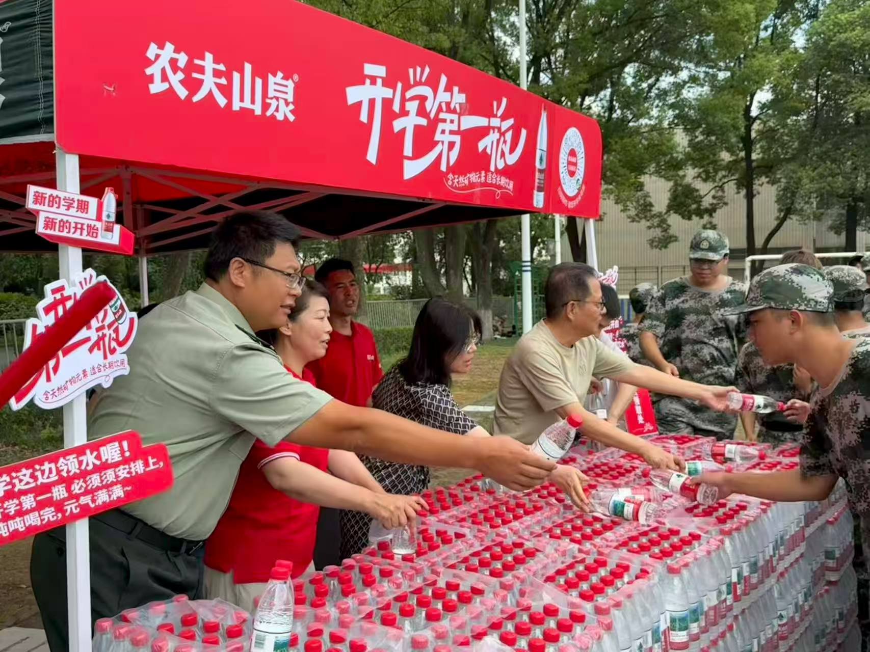 雖已立秋,但軍訓(xùn)期間的溫度仍然“熱情高漲”。后勤管理處心系參訓(xùn)教官和新生,經(jīng)過前期積極溝通,聯(lián)合中超超市為廣大新生每人贈送了開學(xué)第一瓶水。