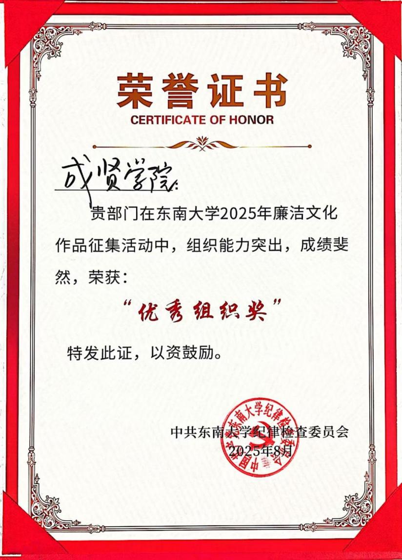 成賢學(xué)院在東南大學(xué) 2025 年廉潔文化獲獎作品評選中師生獲獎名單