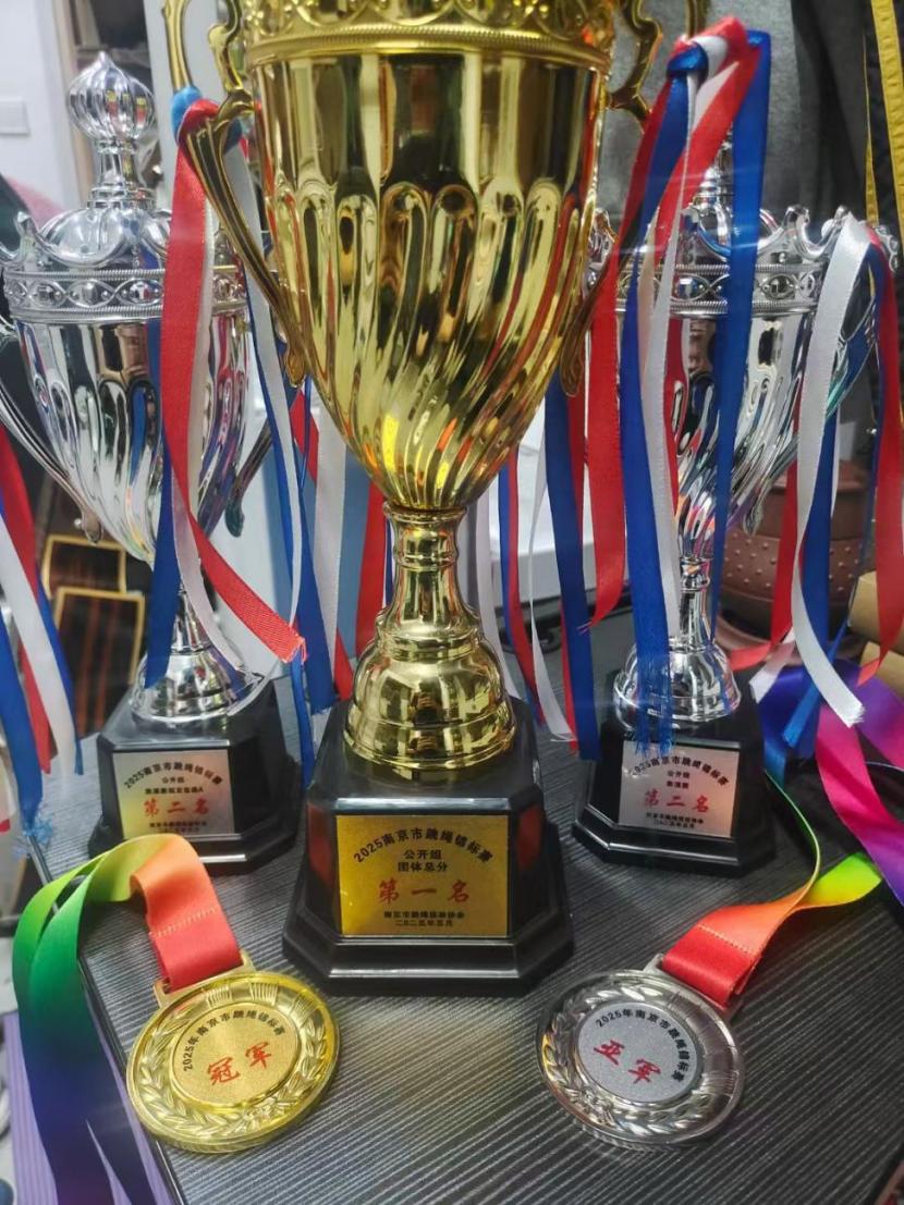 我校花樣跳繩隊成立于今年2月,由體育教研室主任王青禾擔任領(lǐng)隊,2023級學子夏鵬宇擔任教練兼隊長,目前共有18名隊員。經(jīng)過幾個月的刻苦訓練,跳繩隊便榮獲南京市跳繩錦標賽、江蘇省跳繩精英賽等比賽15個獎項。