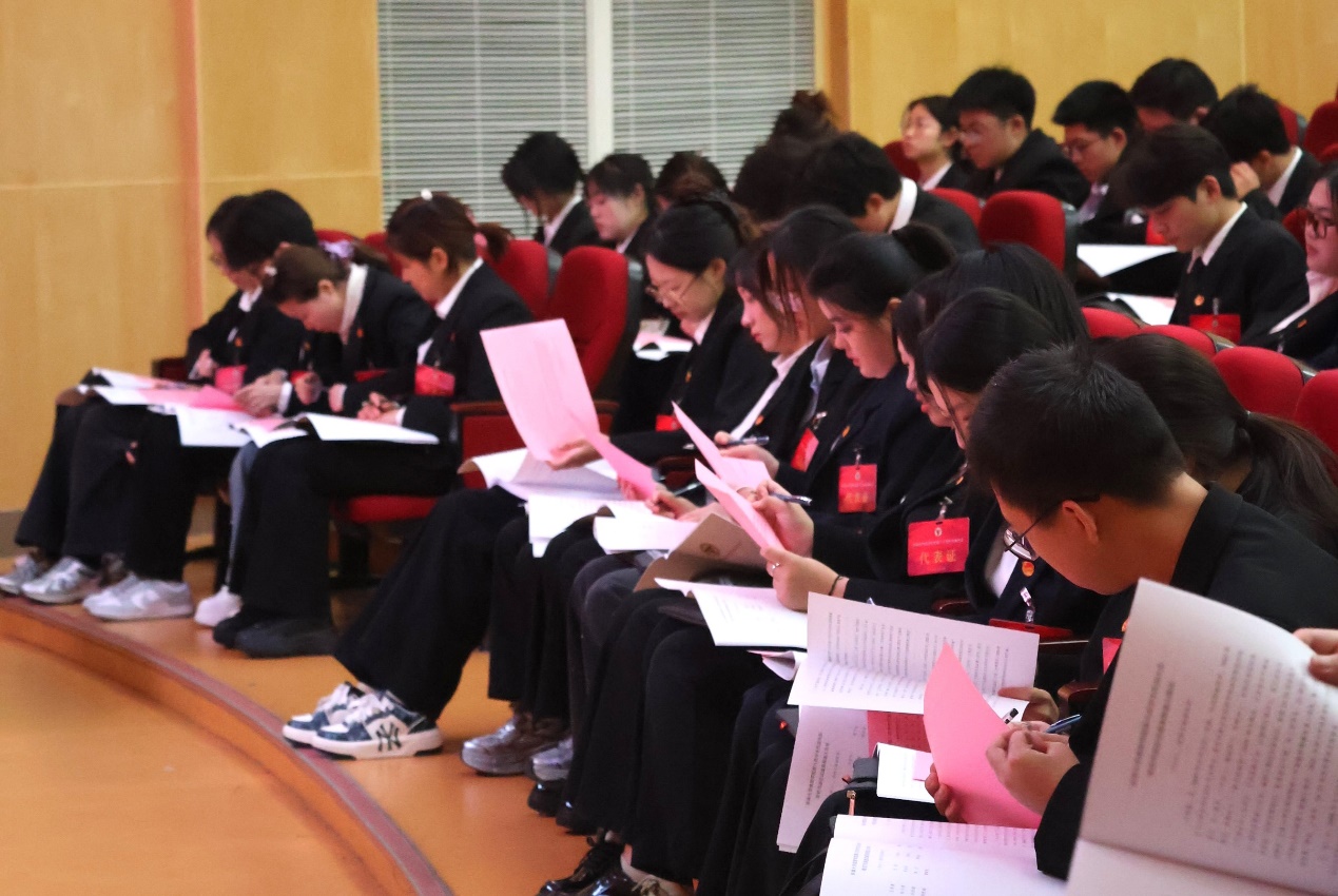 正式會(huì)議階段,與會(huì)代表先后審議并通過了《第七次學(xué)生代表大會(huì)常任代表會(huì)議工作報(bào)告》《第二十屆學(xué)生會(huì)組織工作報(bào)告》《第八次學(xué)生代表大會(huì)提案工作報(bào)告(草案)》;大會(huì)主席團(tuán)向大會(huì)作《扛起青春使命,矢志奮斗前行,帶領(lǐng)廣大同學(xué)為建設(shè)全國一流應(yīng)用型大學(xué)砥礪前行》工作報(bào)告,總結(jié)上一階段學(xué)生會(huì)工作,并對今后工作提出建議;大會(huì)根據(jù)《第八次學(xué)生代表大會(huì)選舉辦法》等文件規(guī)定,秉持公平公正公開原則,采用差額選舉的方式,選舉產(chǎn)生了新一屆常任代表會(huì)議成員、學(xué)生會(huì)主席團(tuán)成員。會(huì)議在全體代表激昂的《國際歌》歌聲中閉幕。