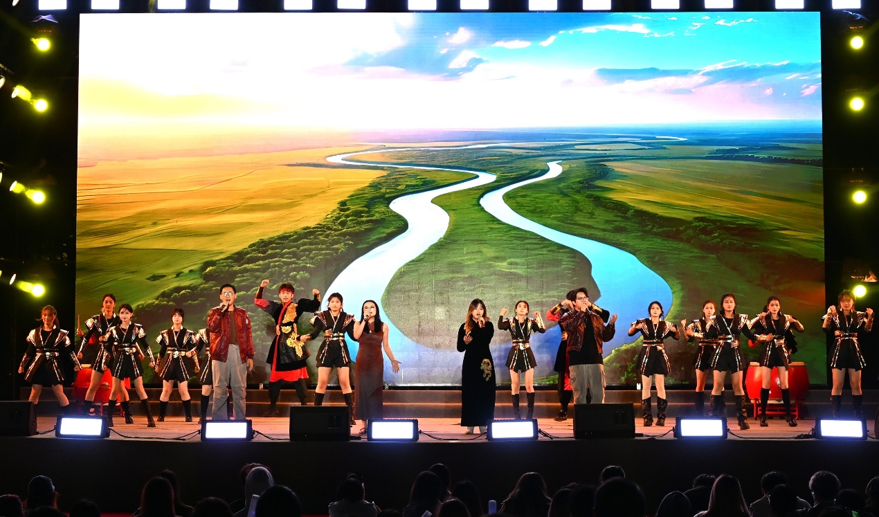 第二篇章“新Young啟航·逐夢成賢”以“成長”為題,用熱愛詮釋逐夢的堅定。舞蹈《開天》以極具張力的舞姿,演繹青春無畏的闖勁;歌曲串燒《胡廣生》《倔強》在深情敘事與勵志吶喊間切換,唱出青年的赤子之心;器樂《金陵四季》用旋律勾勒古都南京的四季盛景,讓地域文化與校園情懷相融;2025級新生輔導(dǎo)員驚喜亮相舞蹈《愛你》,用靈動舞姿傳遞溫暖期許;歌舞《天地龍鱗》更以恢弘氣勢展現(xiàn)祖國山河的壯闊與社會和諧的圖景,將現(xiàn)場氛圍推向高潮。
