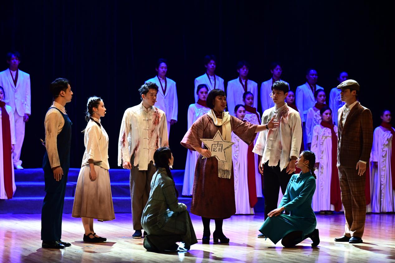 本次上演的情景組歌《雨花臺(tái)信仰的力量》作品結(jié)構(gòu)宏大、風(fēng)格莊嚴(yán)恢宏,通過(guò)序曲和《信仰》《氣節(jié)》《情懷》三大篇章及尾聲共15首曲目,構(gòu)筑了一場(chǎng)跨越時(shí)空的精神對(duì)話(huà)。演出在藝術(shù)呈現(xiàn)上獨(dú)具匠心,融合合唱、獨(dú)唱與情景表演等多種形式,在緊扣主題的同時(shí)兼顧風(fēng)格的多樣化,極大增強(qiáng)了作品的感染力與視覺(jué)沖擊力。劇中通過(guò)章節(jié)式情景歌曲,集中展現(xiàn)鄧中夏、惲代英、袁咨桐等12位雨花英烈的感人事跡,以戲劇化手法再現(xiàn)他們?cè)讵z中堅(jiān)貞不屈、為信仰獻(xiàn)身的壯烈場(chǎng)景,深刻詮釋了中國(guó)共產(chǎn)黨人崇高理想信念、高尚道德情操、為民犧牲的大無(wú)畏精神,也傳遞出新時(shí)代青年繼承先烈遺志、賡續(xù)紅色基因的堅(jiān)定信念。