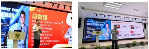 12月4日,系列活動(dòng)收官站聚焦“數(shù)字技能實(shí)戰(zhàn)”,邀請(qǐng)國(guó)家高級(jí)電子商務(wù)師段富超老師圍繞短視頻創(chuàng)作、AI工具應(yīng)用、電商直播三大板塊展開(kāi)分享。活動(dòng)由張利娜老師主持,經(jīng)濟(jì)管理學(xué)院副院長(zhǎng)孫亮到場(chǎng)指導(dǎo)。