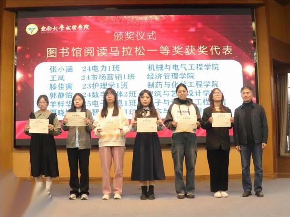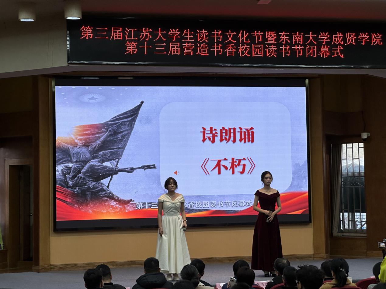 12月9日,第三屆江蘇大學(xué)生讀書文化節(jié)暨東南大學(xué)成賢學(xué)院第十三屆營(yíng)造書香校園讀書節(jié)閉幕式活動(dòng)在真知館報(bào)告廳圓滿結(jié)束。東南大學(xué)成賢學(xué)院黨委書記張志勝,校工會(huì)主席、圖檔信息中心主任沈冬生,學(xué)生處處長(zhǎng)施杰,各二級(jí)學(xué)院領(lǐng)導(dǎo)及獲獎(jiǎng)師生代表出席活動(dòng),200余名師生參加閉幕式。