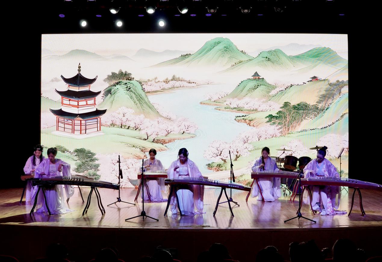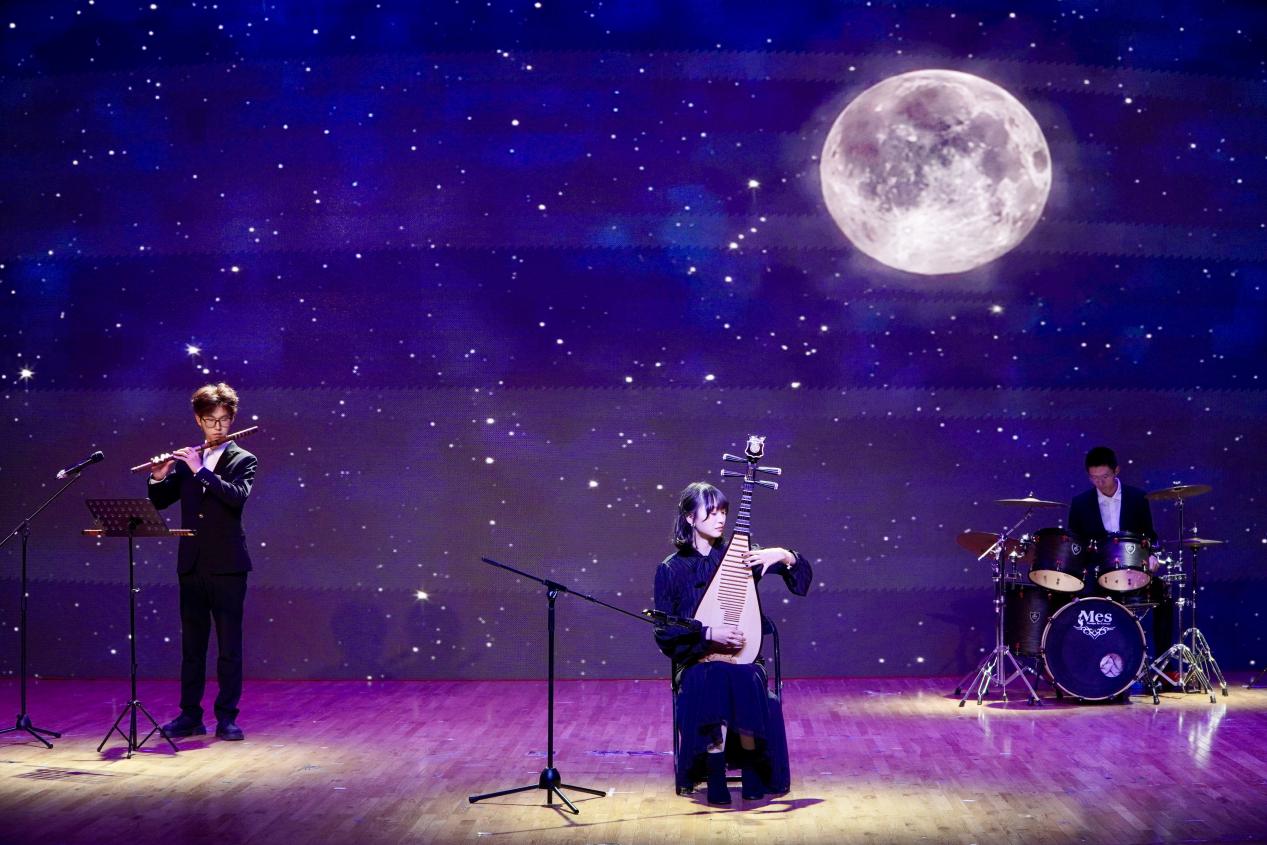演出在悠揚的旋律中徐徐展開,一曲《蘭亭序》拉開序幕,婉轉(zhuǎn)曲調(diào)勾勒出傳世名篇的雅致意境;古箏重奏《山居秋暝》《戰(zhàn)臺風(fēng)》接連登場,前者以清雅之音描摹秋日山林的靜謐悠然,后者憑激昂旋律彰顯風(fēng)雨來襲的磅礴氣勢;琵琶獨奏《十面埋伏》節(jié)奏急促、鏗鏘有力,將古戰(zhàn)場的緊張氛圍與激烈交鋒刻畫得入木三分;竹笛與鋼琴合奏的《美麗的神話》,讓民族樂器的悠揚與西洋樂器的醇厚完美交融,訴說著跨越時空的動人情愫;吉他彈奏《All Falls Down》節(jié)奏明快,盡顯青春朝氣;小提琴演繹《第二圓舞曲》旋律流暢,帶領(lǐng)觀眾沉浸在典雅浪漫的音樂世界;竹笛合奏《那些年》喚起全場師生的青春記憶,以熟悉的曲調(diào)引發(fā)陣陣共鳴;《Fly Me to the Moon》以靈動音符勾勒月夜夢幻,《萬疆》以恢宏旋律禮贊祖國山河;鋼琴獨奏《第一鋼琴協(xié)奏曲第二樂章》盡顯古典雋永,《Walking by the World》融合東方韻律與西方和聲,為這場冬日音樂雅會畫上圓滿句號。