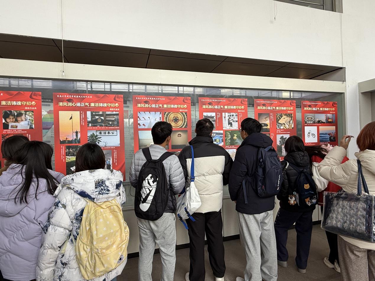 為深入學(xué)習(xí)貫徹習(xí)近平新時(shí)代中國特色社會(huì)主義思想,全面貫徹黨的二十大和二十屆三中、四中全會(huì)部署,持續(xù)深化全面從嚴(yán)治黨,一體推進(jìn)不敢腐、不能腐、不想腐,引導(dǎo)廣大師生干部進(jìn)一步夯實(shí)清正廉潔思想根基、厚植廉潔奉公文化基礎(chǔ),2025年12月24日—2026年1月9日,由學(xué)校紀(jì)委主辦,紀(jì)檢監(jiān)察室、組織人事部、工會(huì)、團(tuán)委承辦,建筑與藝術(shù)設(shè)計(jì)學(xué)院協(xié)辦的“清風(fēng)潤心揚(yáng)正氣,廉潔鑄魂守初心”廉政文化作品展在電工電子大樓二樓展廳舉辦。其間,學(xué)校黨政領(lǐng)導(dǎo)及5400余名師生共同參觀了作品展。